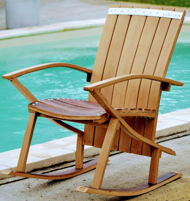 Ce fauteuil à bascule, ou rocking-chair, est le résultat du démontage complet d'une barrique, et du réassemblage des douelles sous cette forme.